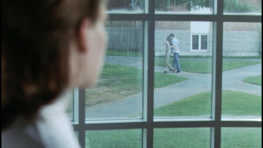 takes off her mask, looks out the window and sees Tori and Jake walking and laughing together. It's very hard for her seeing them so confident with each other.