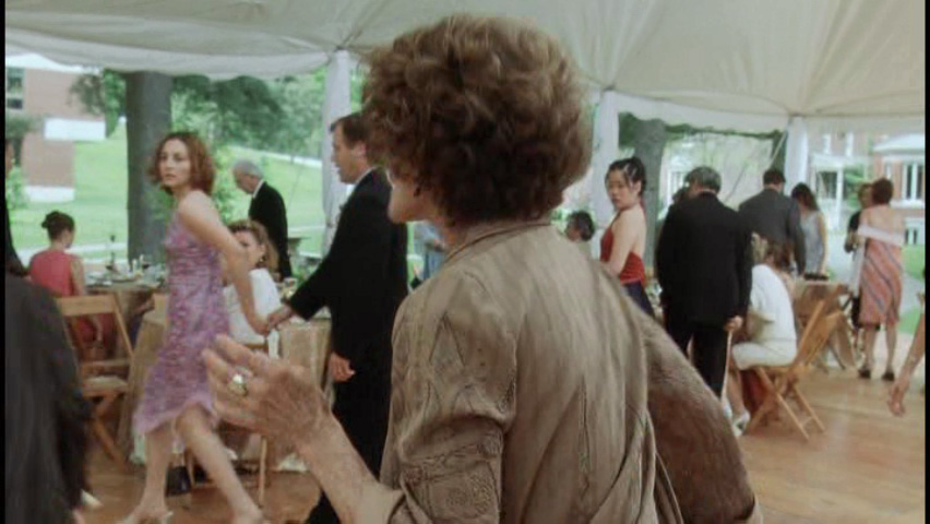 Paulie grabs her, spins around with her, and then runs away from the party. Ms. Bannet walks over to